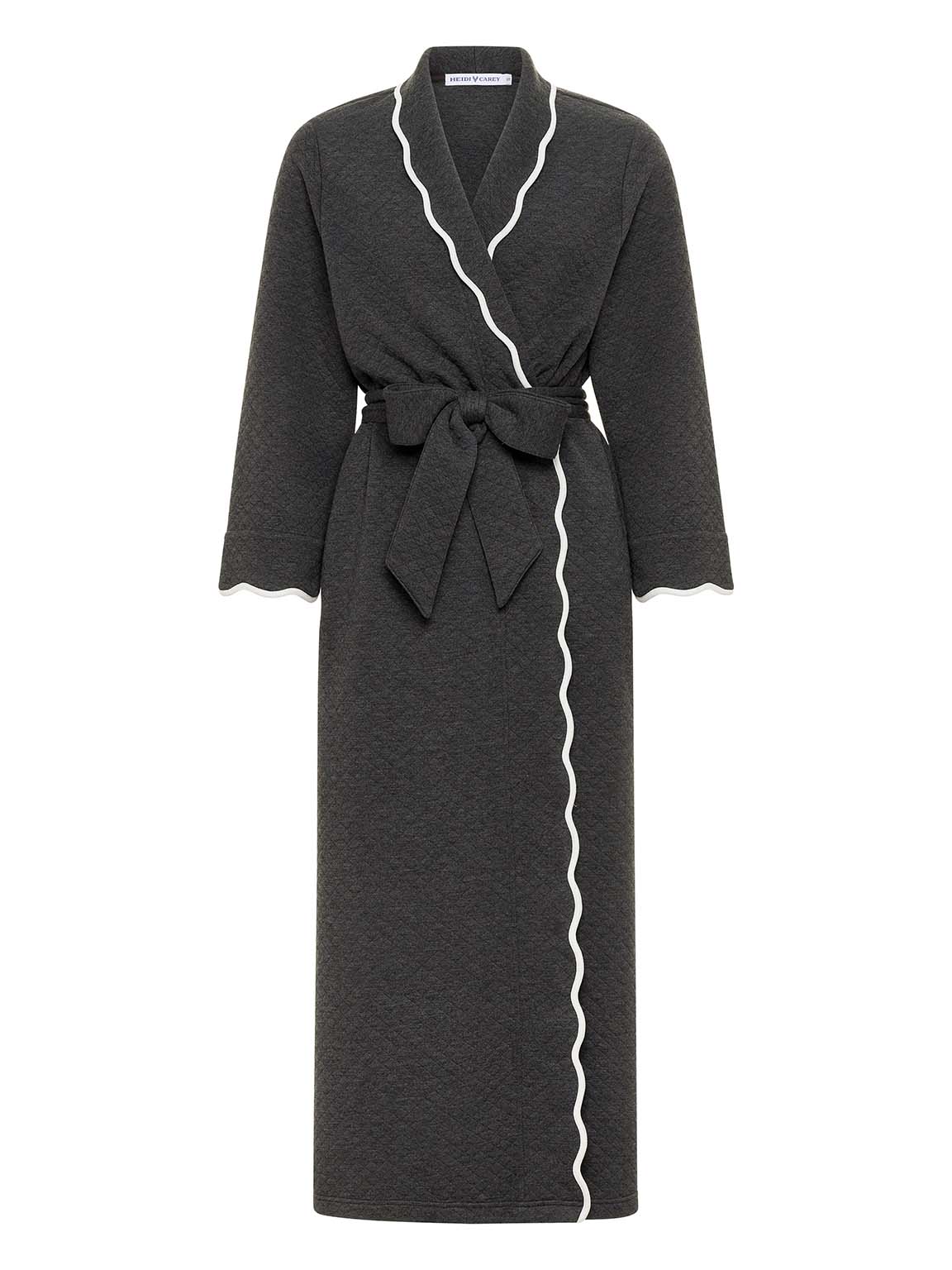 New quilted robe designed to keep you warm and in style. My dark grey quilted classic robe has a tie with a bow for a flattering look.