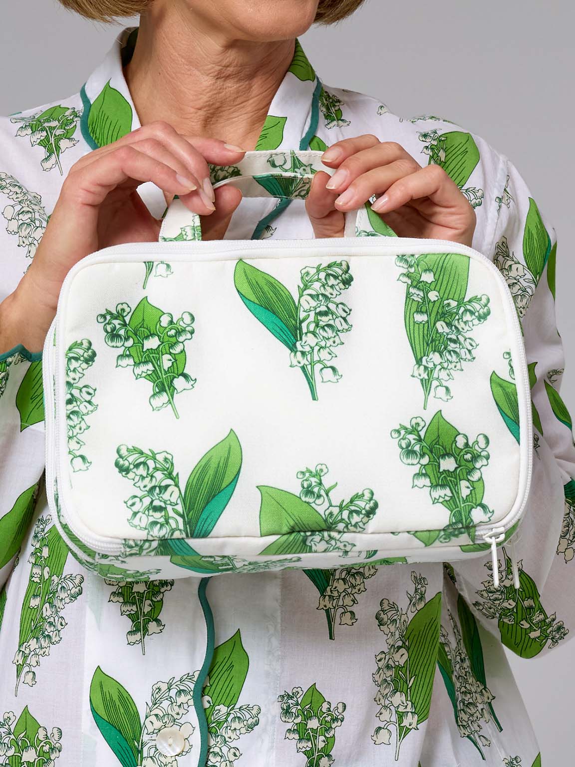 Stylish, practical, and perfectly sized, the Heidi Carey Lily of the Valley Medium Handle Cosmetic Bag is your ultimate travel companion. Designed for women who appreciate classic style and top-notch functionality, this bag blends beauty and utility seamlessly.